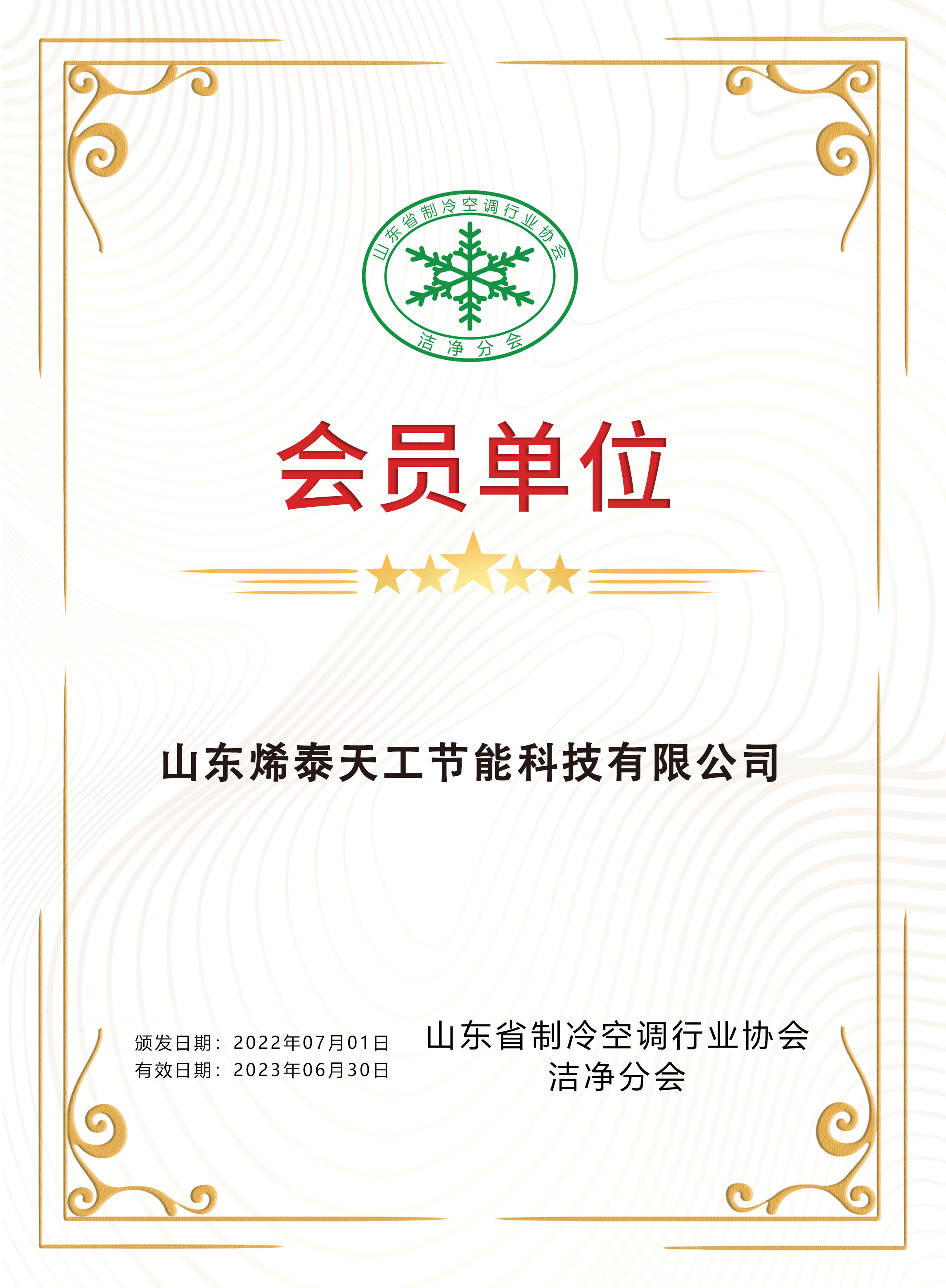 近日,山東烯泰天工節(jié)能科技有限公司依據(jù)《山東省制冷空調(diào)行業(yè)協(xié)會(huì)章程》審定,成為山東省制冷空調(diào)行業(yè)協(xié)會(huì)潔凈分會(huì)會(huì)員單位。